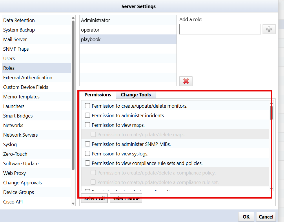 4. In the [Change Tools] tab, check the [Change Tools] items you want to allow with the corresponding permissions.